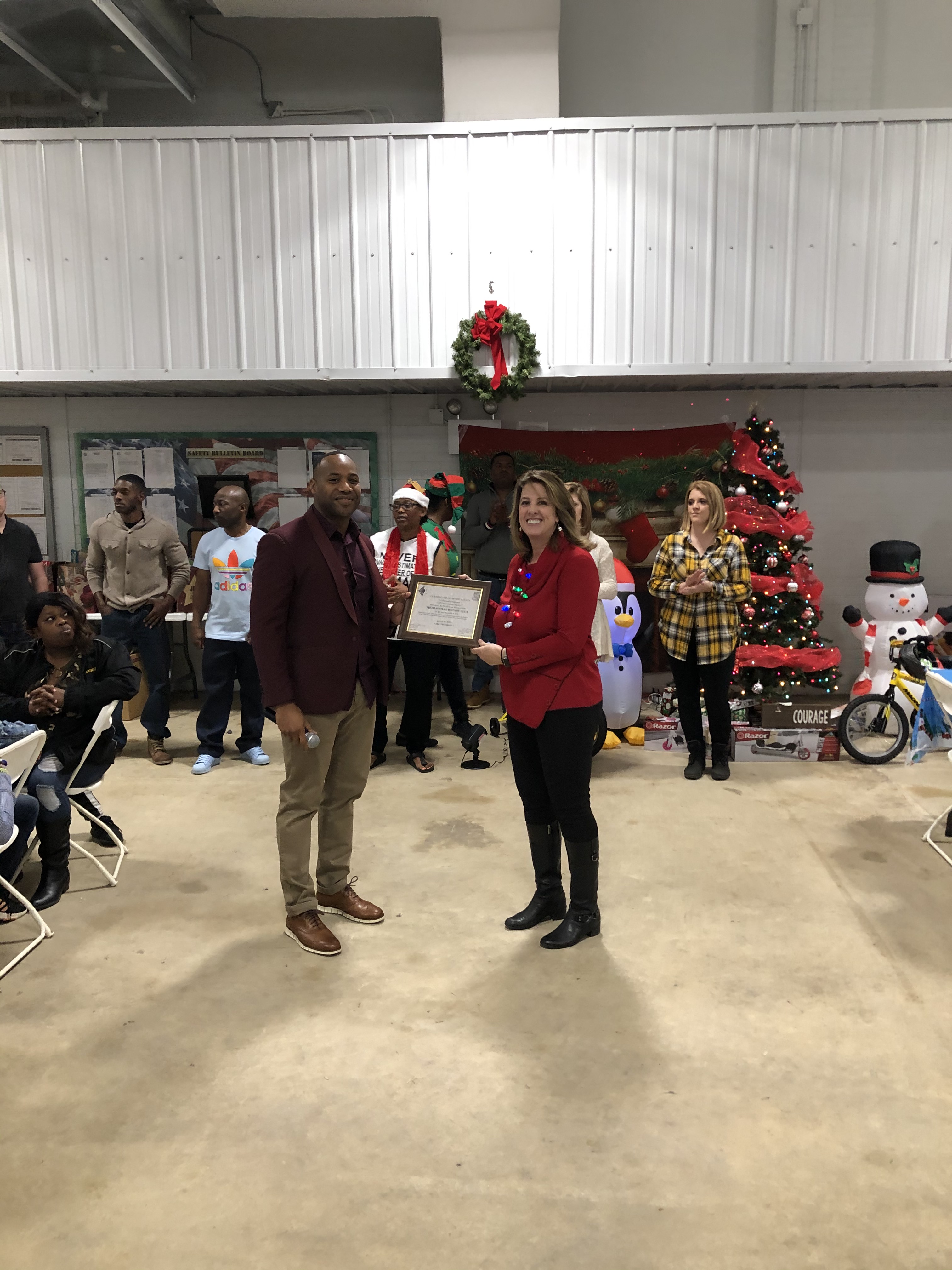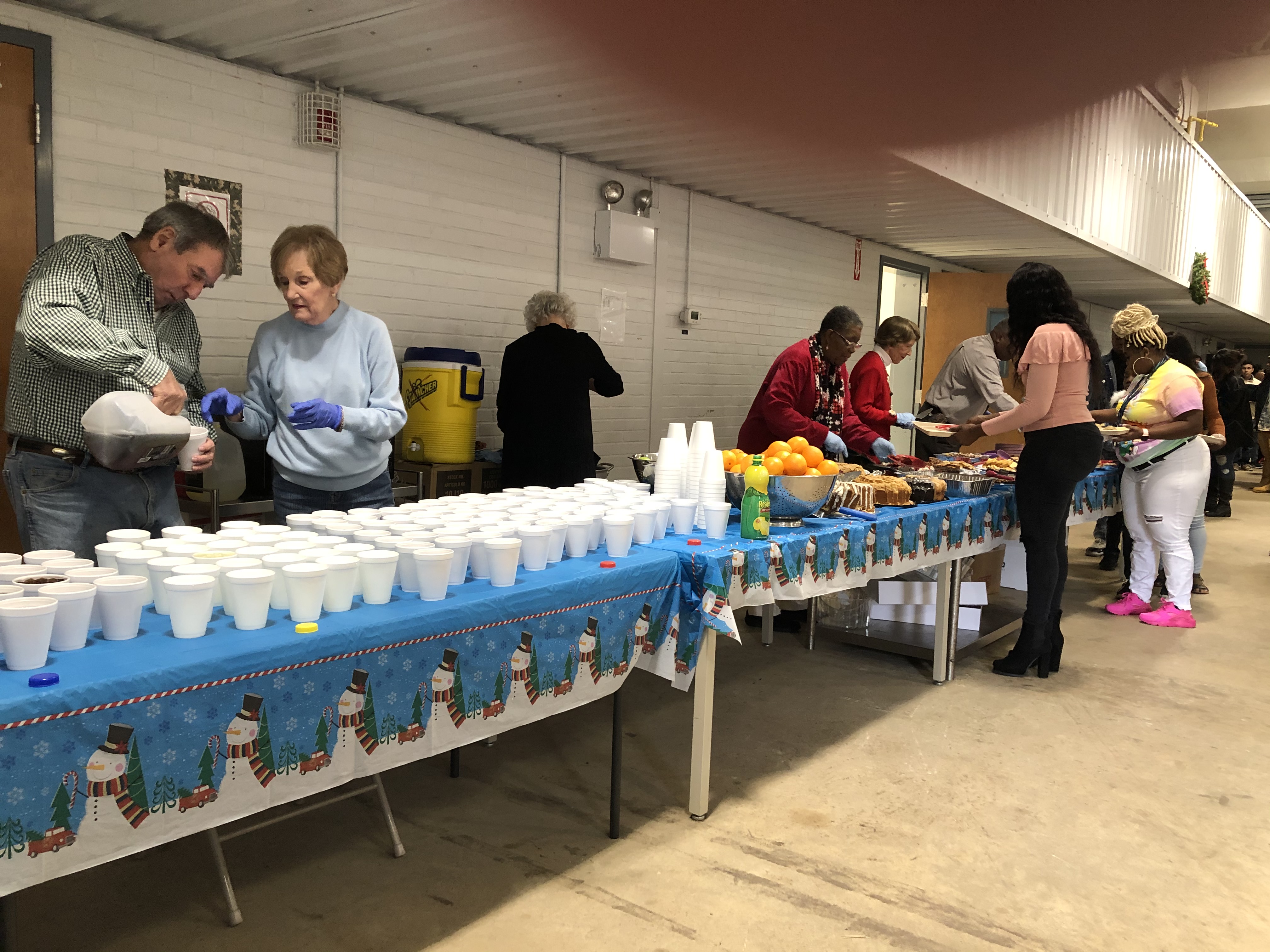 The Rotary Club of Thomasville supports the 1230th Transportation Company, Georgia National Guard. This company has deployed to the combat zone in Iraq and Afghanistan twice in the last 12 years. The Club honored some two hundred of these soldiers and their families by supporting the Family Day Holiday party from 11 to 3, Sunday, December 8th at the Armory this year. On this day the soldiers and their families celebrated each other, were provided gifts and a traditional turkey and ham dinner with all the trimmings. The hall was decorated with holiday themes, holiday music was played and a Bounce House and slide was provided for the kids. Santa Claus made an appearance with gifts for the children. In addition, supported by Thomas University SFC Mendez was honored with a Peacemaker Award and recognized for his service to the community. Rotarians and other volunteers bought and prepared the food for the officers and non-commissioned officers to serve. Rotarians provided homemade desserts for the party. Our club also provided the Bounce House and the tables and chairs for the party. The event was covered by the Thomasville Times Enterprise. This is an annual event to show our Support for the Troops! This project supports the Rotary brand encouraging Service above Self and our club’s longstanding effort to honor those who serve in our community