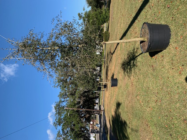A team of arborists took the better part of the week of December 7th to plant 24- 15-foot live oaks (Quercus virginiana,) a gift to the city from Thomasville’s Rotarians. At cost of $20,000, the trees were purchased from and planted by Lake Landscape, LLC of Whigham. The City of Thomasville will play a key role in ensuring the continued good health and growth of the trees by providing irrigation.