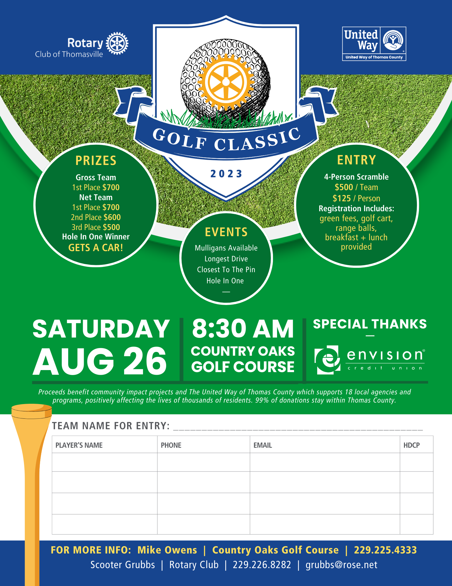 Since 2017, Rotary Club of Thomasville has sponsored the annual Rotary / United Way Golf Classic and this year is no exception.
