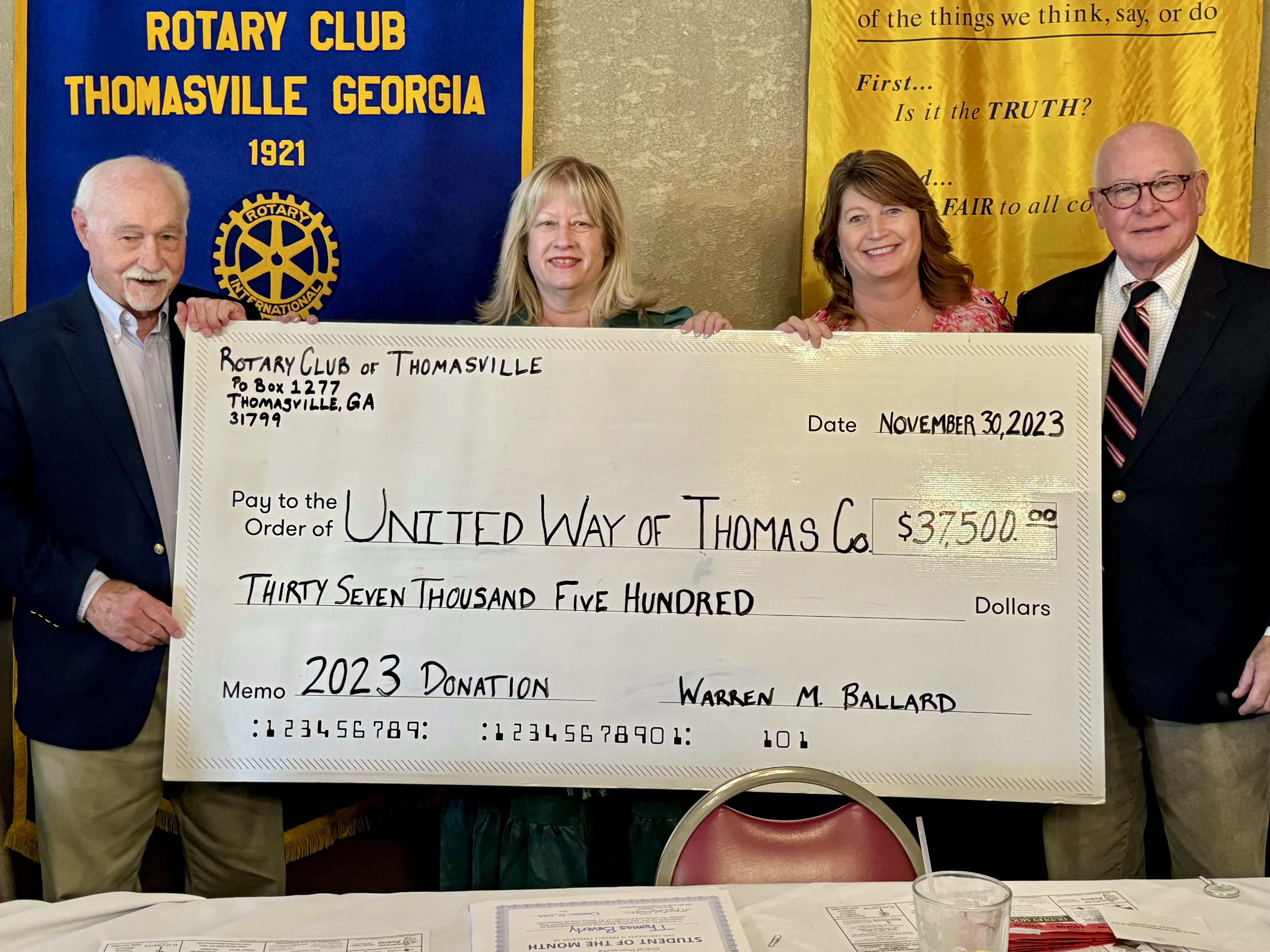 In a heartwarming moment at a club meeting end of November, we presented a giant check of $37,500 to the United Way of Thomas County. This donation, part of the $50,000 raised in our annual Golf Classic, highlights our commitment to supporting local initiatives and making a difference. Together, we are strengthening our community and nurturing future leaders. Proud to be part of the Rotary Club of Thomasville!