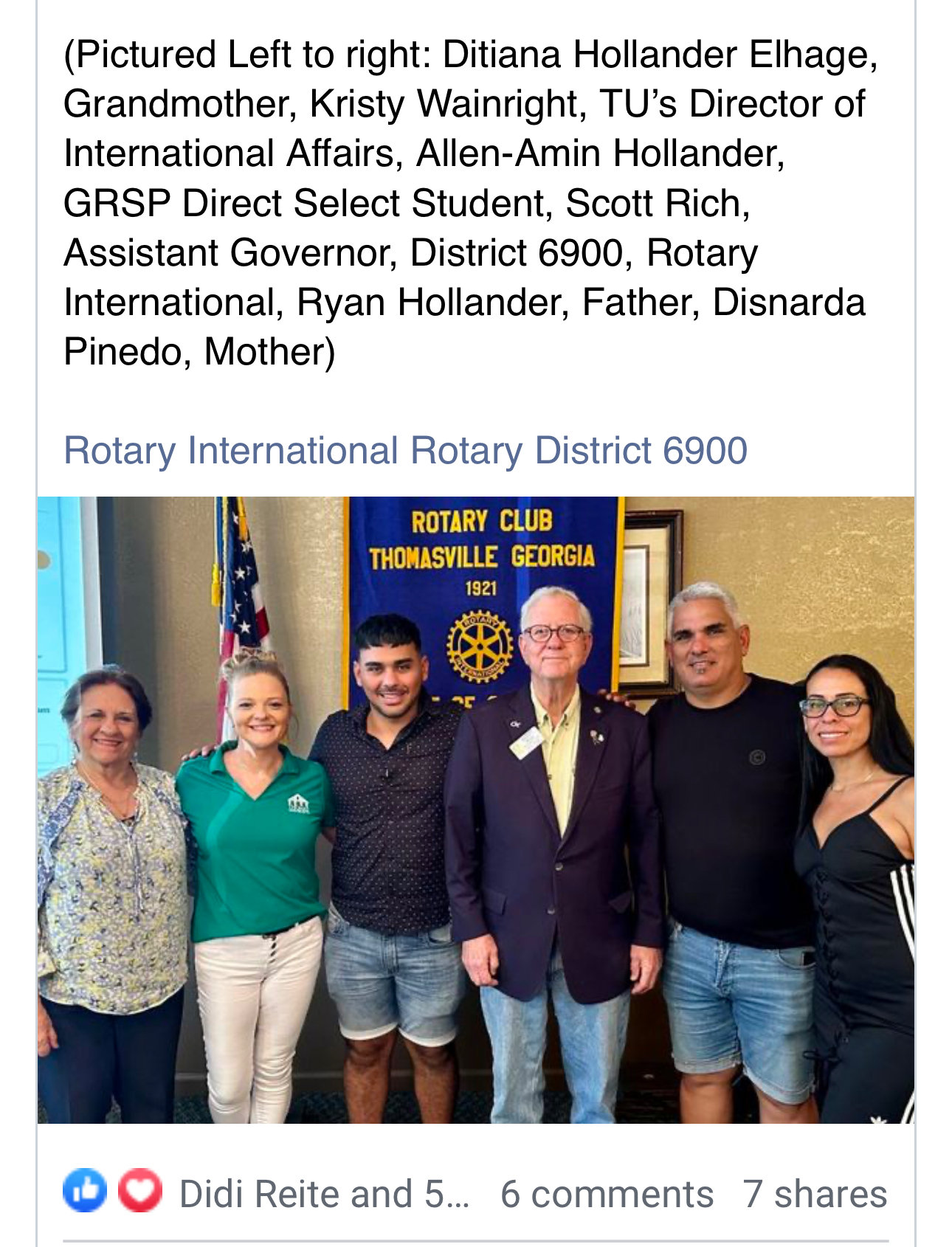 | Thomas University - invited to Rotary meeting and quote supplied for paper from Thomas University’s Director of International Affairs. Thomasville Times-Enterprise - invited to Rotary meeting and published front page article with photo. |