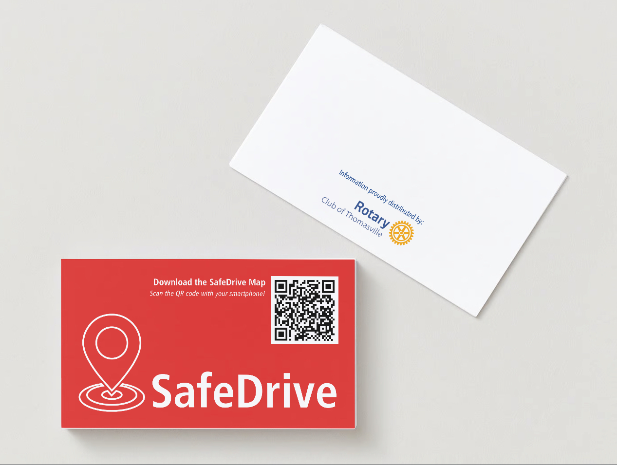 New SafeDrive QR Code business cards were designed by Rotarians and distributed to students when visiting schools